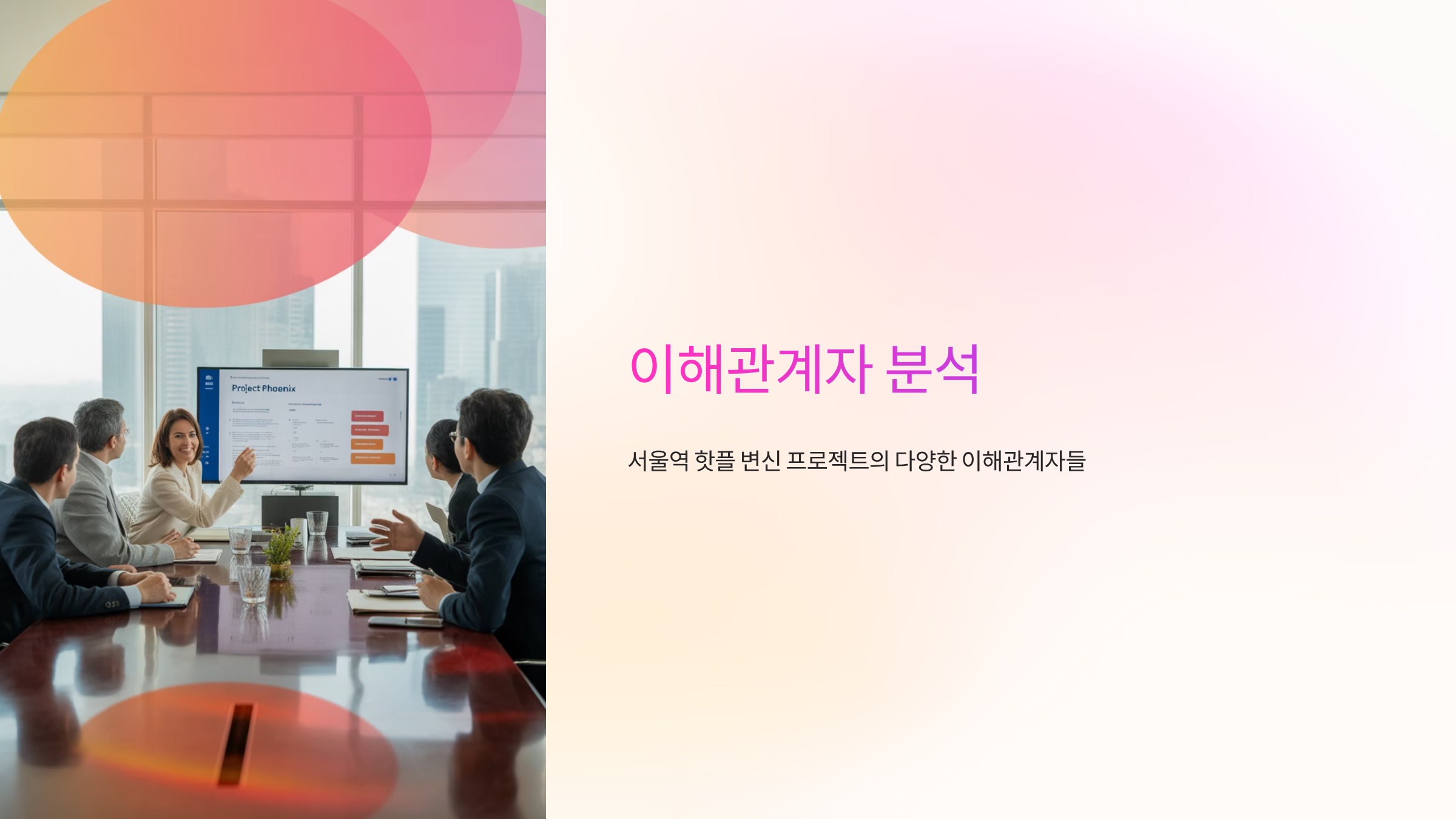 서울역 핫플 변신 프로젝트에는 다양한 이해관계자들이 얽혀 있으며, 각자의 관심사와 요구사항에 따라 활발하게 움직이고 있습니다.