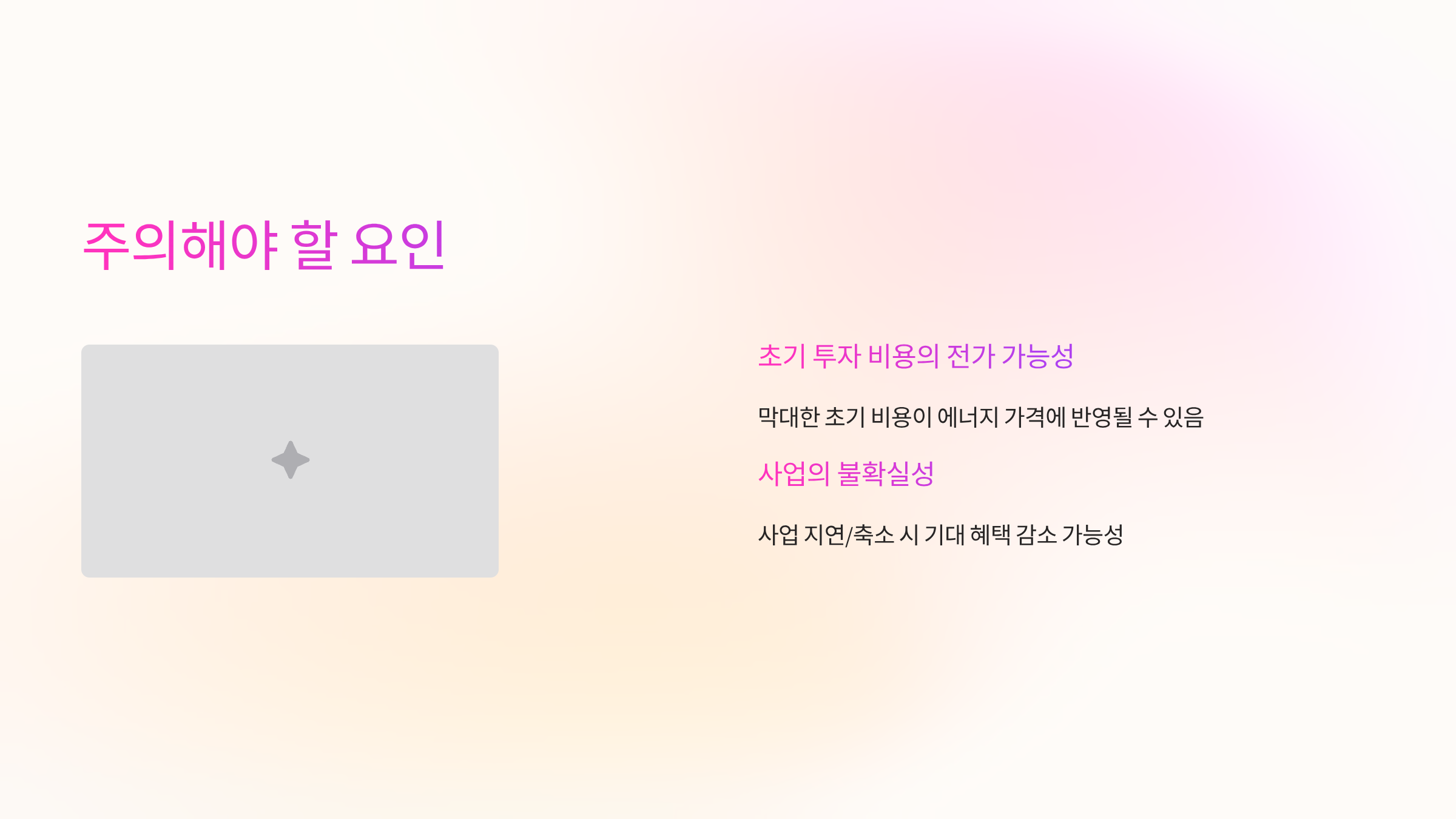 - 리스크 요인: 사업성 불확실성, 막대한 초기 투자 비용 부담.