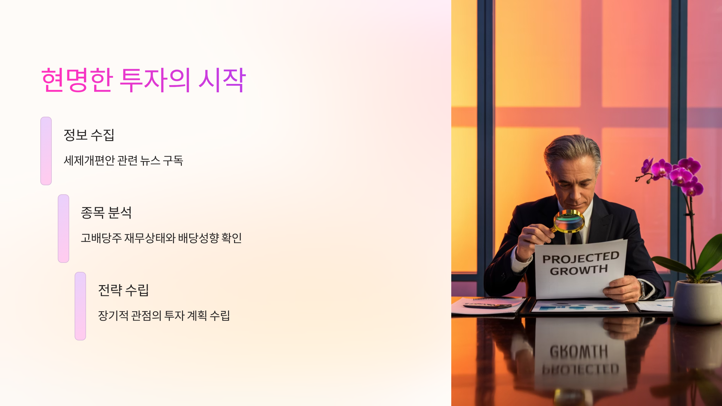 투자는 정보 싸움입니다. 이번 세제개편안처럼 중요한 정책 변화가 있을 때에는 전문가들의 분석을 참고하고, 시장의 흐름을 주시해야 합니다. 지금부터라도 관련 뉴스를 꾸준히 구독하고, 배당주와 관련된 종목들의 재무 상태와 배당성향을 꼼꼼히 확인해 보세요. 현명한 투자자의 길은 작은 관심에서 시작됩니다.
