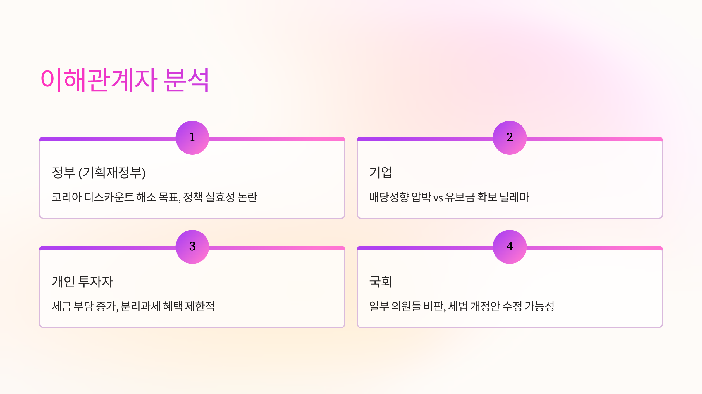 5. 이해관계자 그룹 분석: 정부, 기업, 투자자, 그리고 국회
