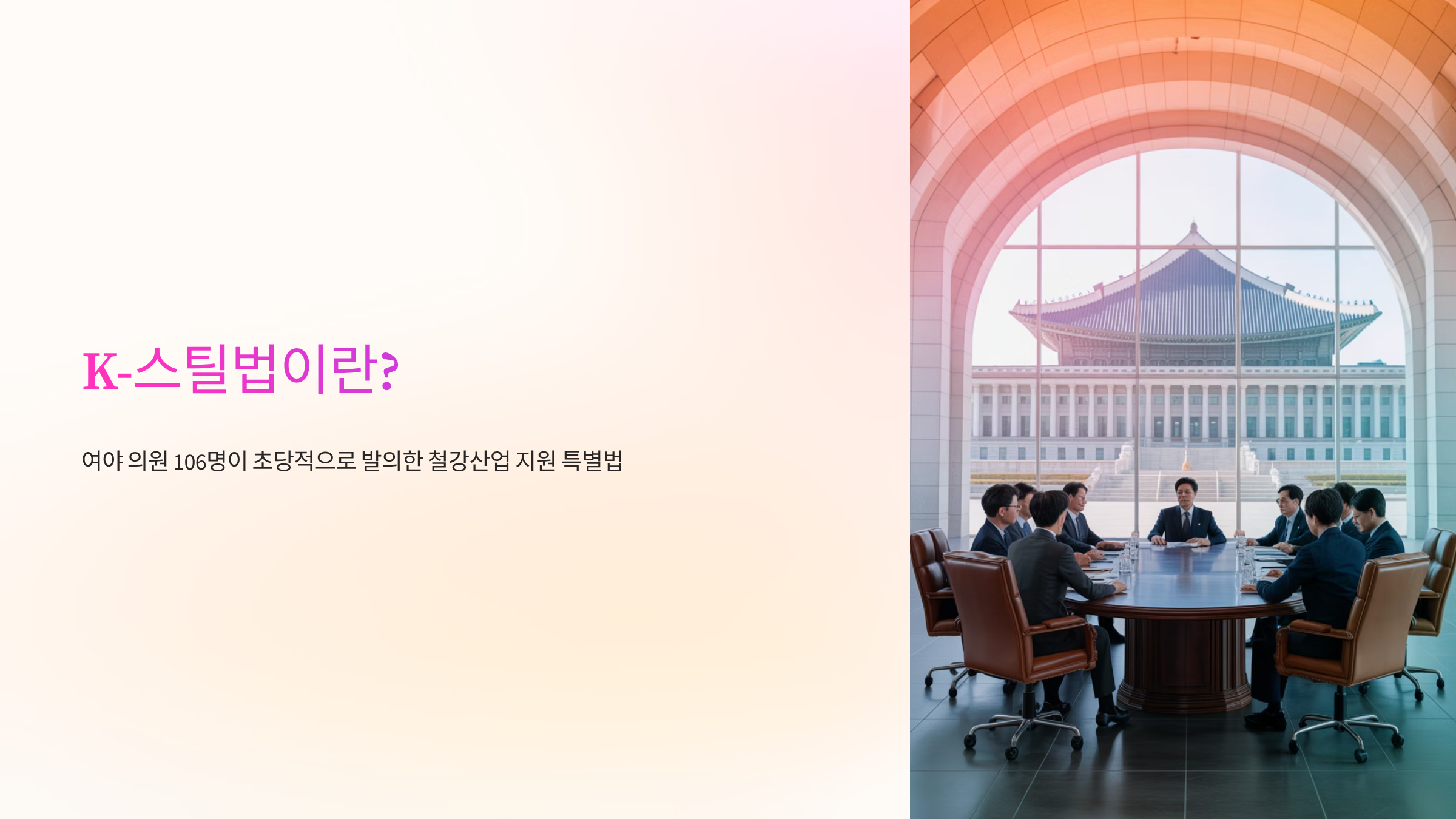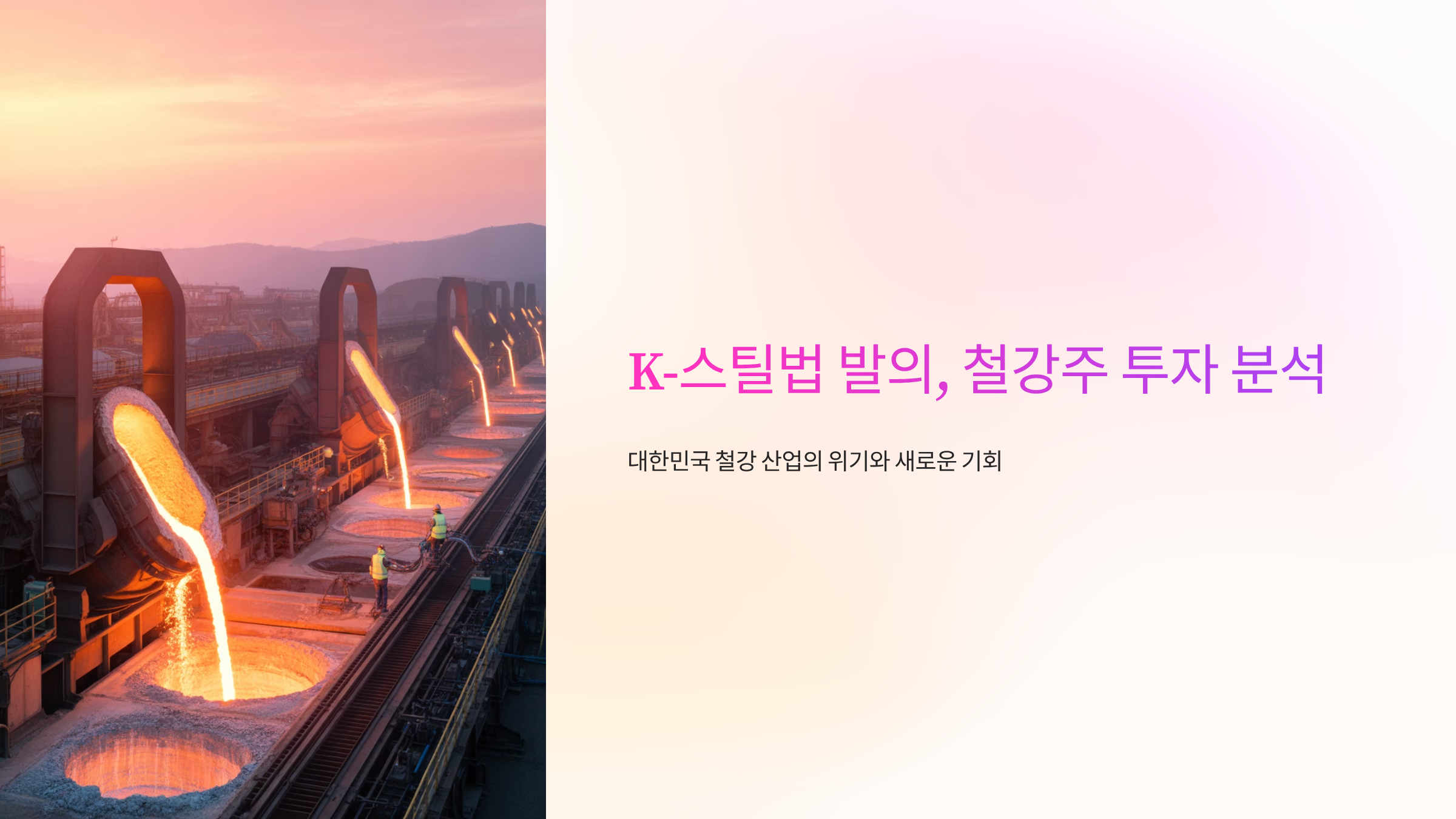 하지만 절망만 있는 것은 아닙니다. 최근 여야 의원 106명이 초당적으로 ‘철강산업 지원 특별법(K-스틸법)’을 발의했다는 소식은 위기에 빠진 철강 산업에 한 줄기 빛을 던져주고 있습니다. 이 법안이 통과되면 우리 철강 산업은 어떻게 변화할까요? 그리고 이 변화 속에서 우리는 어떤 투자 기회를 포착할 수 있을까요? 이 글은 K-스틸법의 핵심 내용을 심층 분석하고, 관련 시장의 변화와 수혜주, 피해 주까지 낱낱이 파헤쳐 여러분의 투자 결정에 실질적인 도움을 제공하고자 합니다.