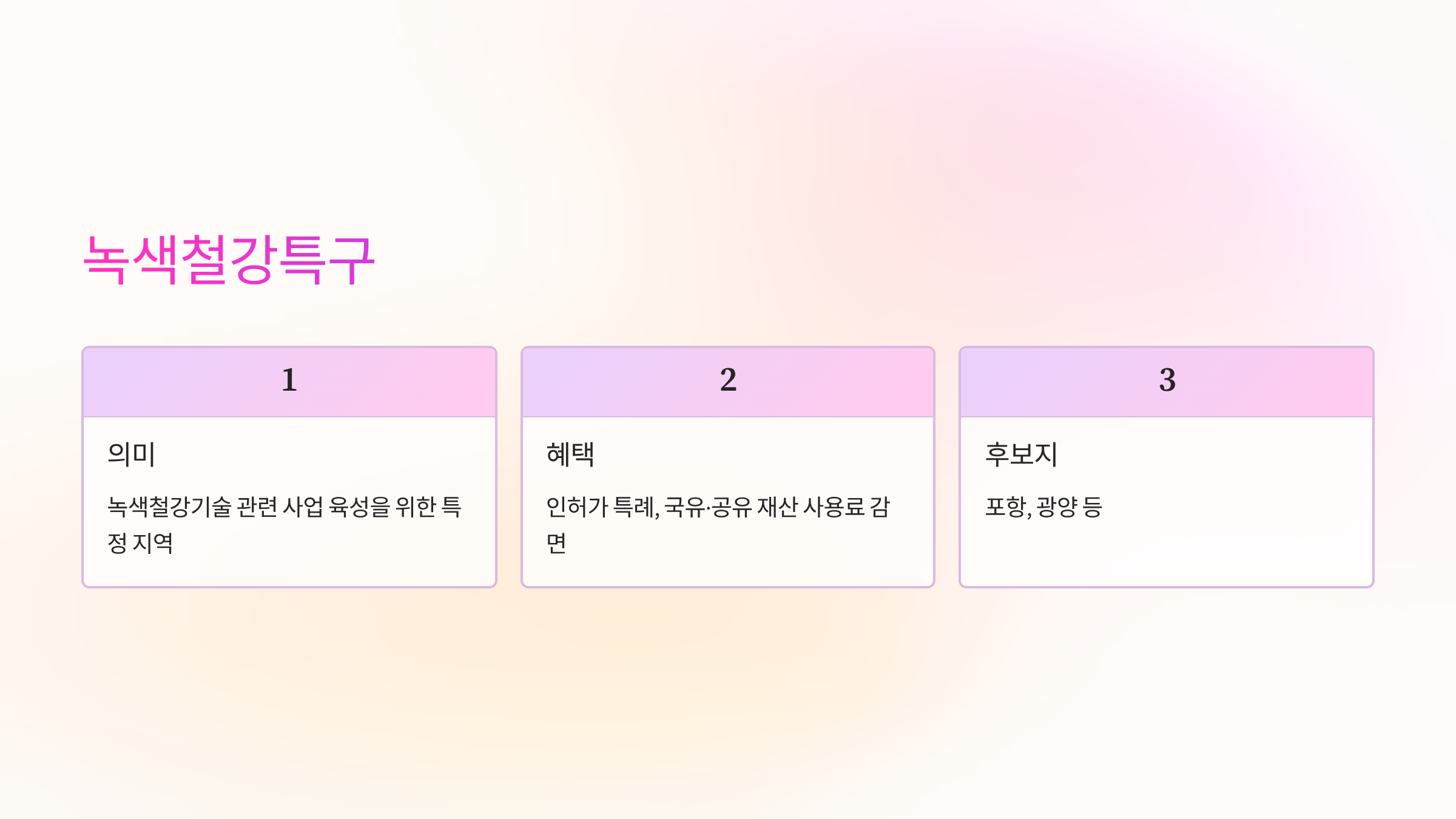 녹색철강특구는 수소환원제철과 같은 녹색철강기술 관련 사업을 육성하기 위해 지정된 특정 지역을 의미합니다. 이 특구로 지정되면 인허가 특례, 국유·공유 재산 사용료 감면 등의 혜택을 받을 수 있어 기업들이 신기술 투자에 적극적으로 나설 수 있도록 유도합니다. 포항, 광양 등이 유력한 후보지로 거론되고 있습니다.
