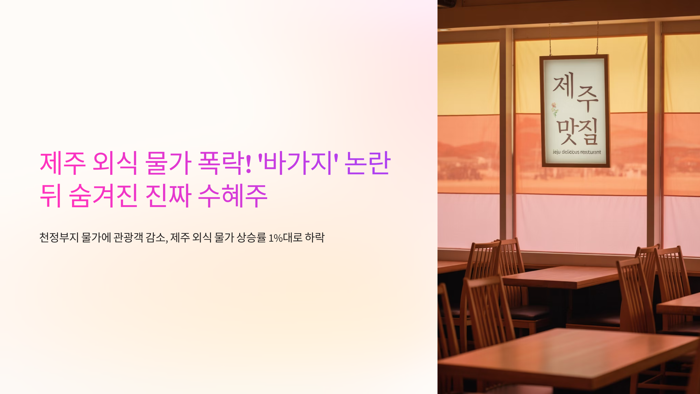 이 글에서는 이번 제주 외식 물가 하락이 가져올 경제적 파급효과와 함께, 관련 시장의 변화를 심층적으로 분석하고, 그 속에서 진짜 수혜를 입을 기업과 피해야 할 기업을 명확하게 짚어드리겠습니다.