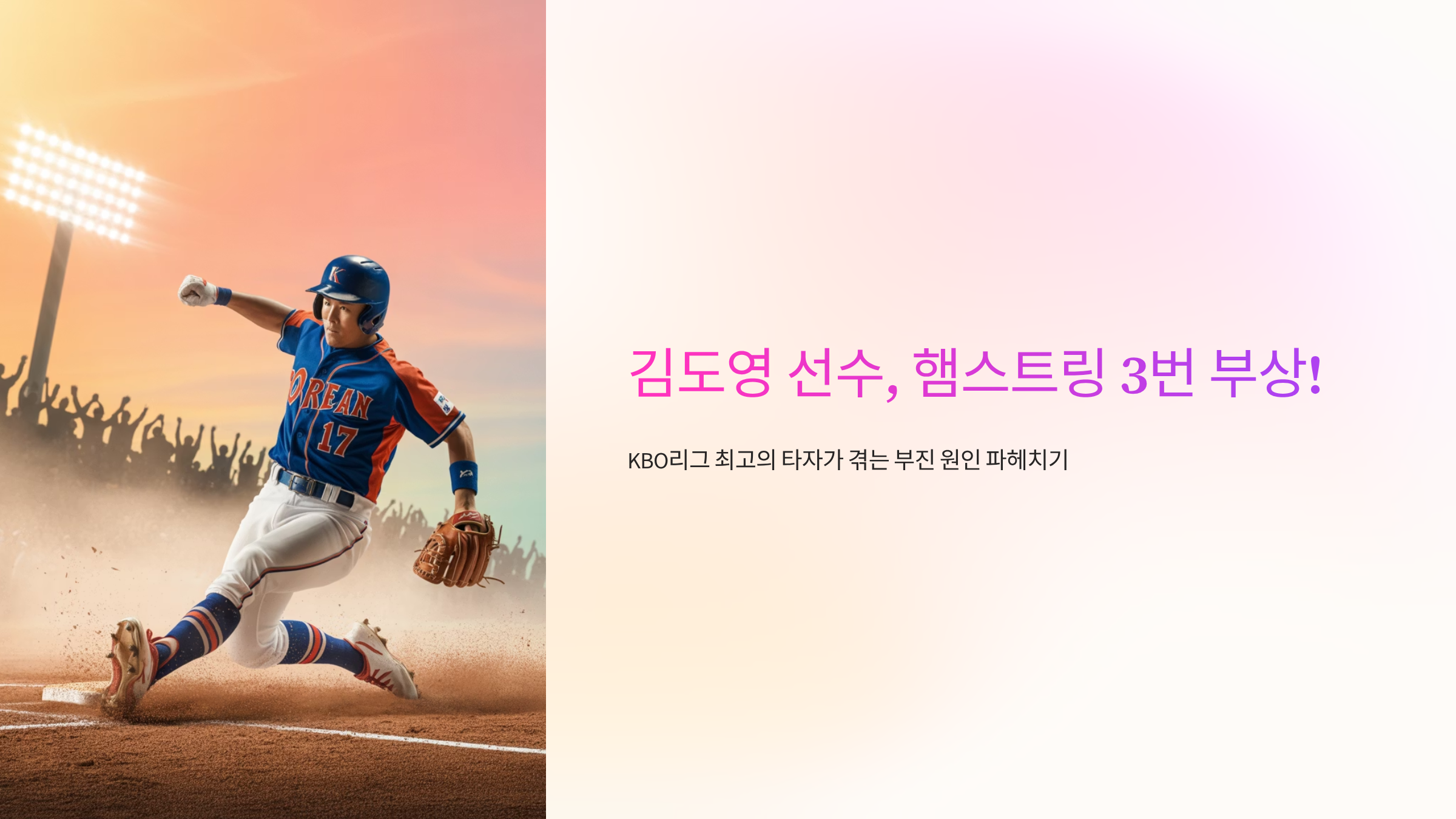 야구팬 여러분, 혹시 지난 시즌 '바람의 손자' 김도영 선수의 시원시원한 홈런과 빠른 발을 기억하시나요? KBO리그를 뒤흔들었던 그의 활약에 많은 팬이 열광했고, 2024시즌 MVP를 수상하며 새로운 야구 스타의 탄생을 알렸습니다. 하지만 2025시즌은 그에게 너무나 가혹한 한 해가 되고 있습니다. 연이어 찾아온 햄스트링 부상으로 인해 제대로 된 경기를 뛰지 못하고, 결국 사실상 시즌 아웃이라는 안타까운 소식까지 전해졌는데요. 팬들의 기대감이 컸던 만큼, 그의 부진은 더 큰 아쉬움으로 다가옵니다. 대체 왜 한 선수가 한 시즌에 세 번이나 같은 부상을 반복하게 된 것일까요? 이 글을 통해 김도영 선수의 부상 이슈를 객관적인 데이터와 함께 분석하고, 그가 다시 그라운드를 누비는 날을 기다리는 팬들에게 작은 위로와 희망을 전하고자 합니다.