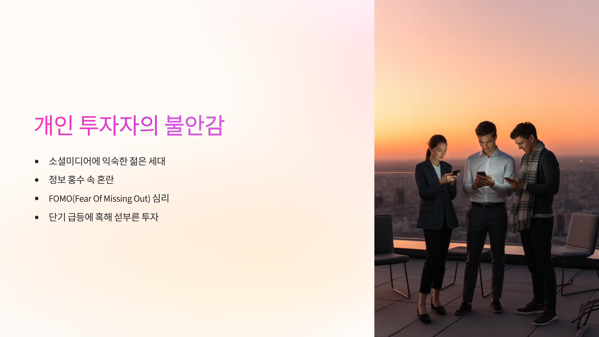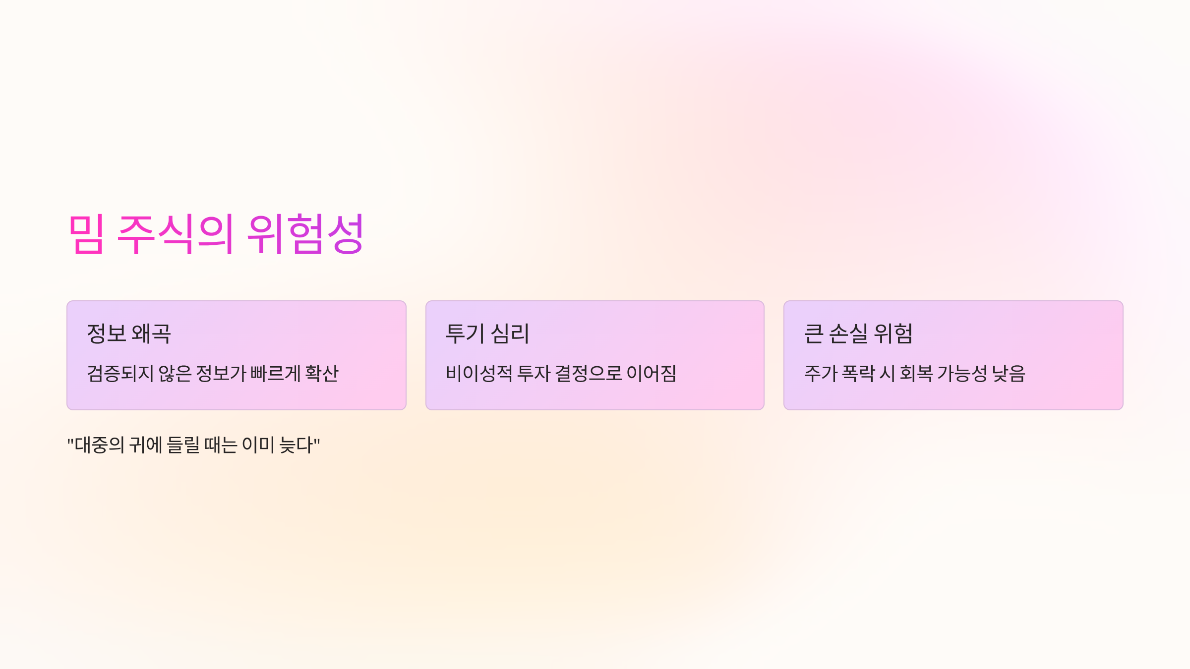 - 비전문 투자자들의 FOMO(Fear Of Missing Out) 심리가 자극됩니다.