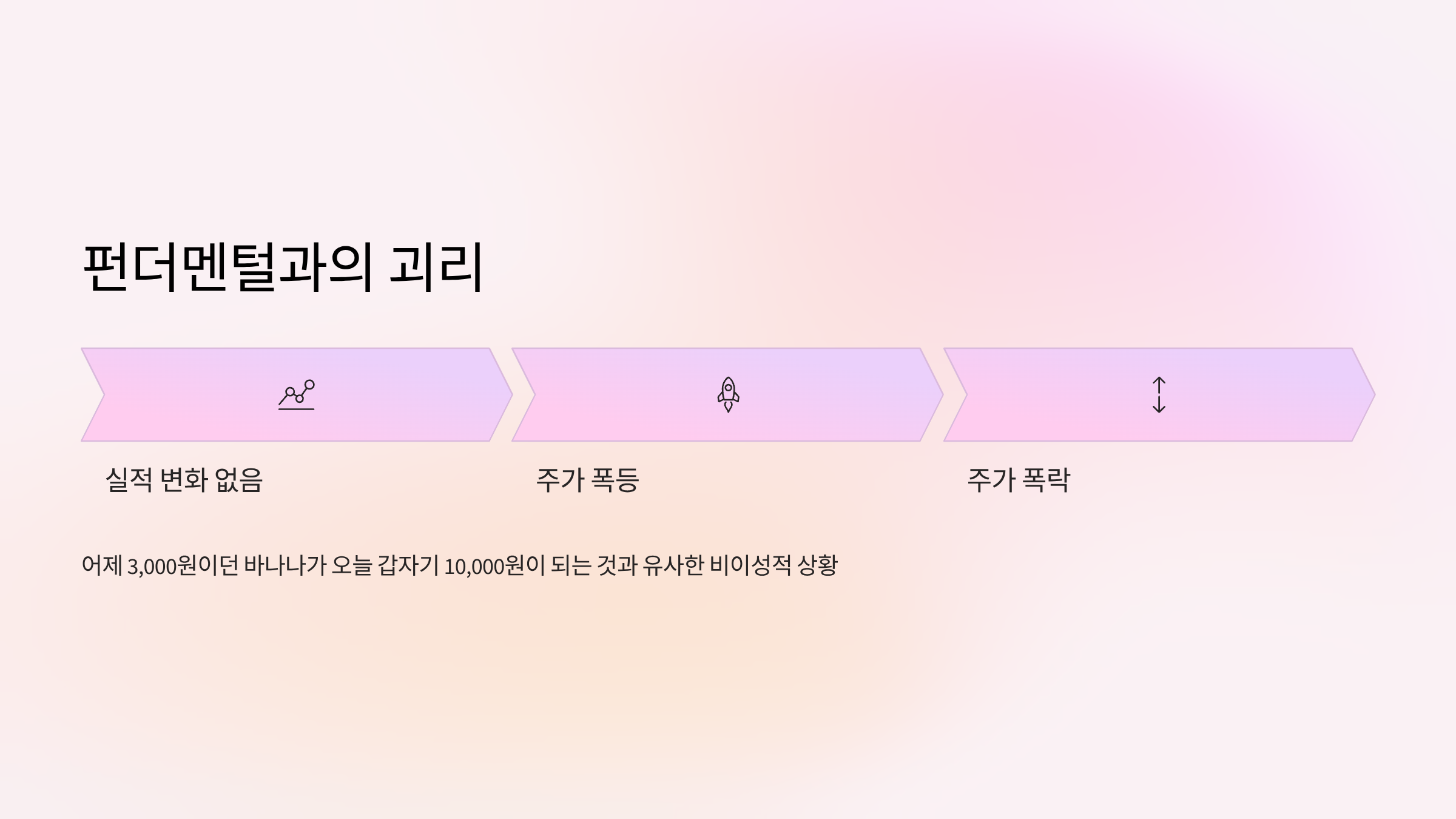 '밈 주식'의 가장 큰 문제점은 펀더멘털(기업의 본질적 가치)과 주가의 괴리입니다. 실적이 그대로인데도 주가는 폭등하고, 다시 폭락하는 현상이 반복됩니다. 이는 일시적인 '유행'에 따른 가격 변동으로, 마치 어제 3,000원이던 바나나가 오늘 갑자기 10,000원이 되는 것과 유사한 비이성적인 상황입니다.