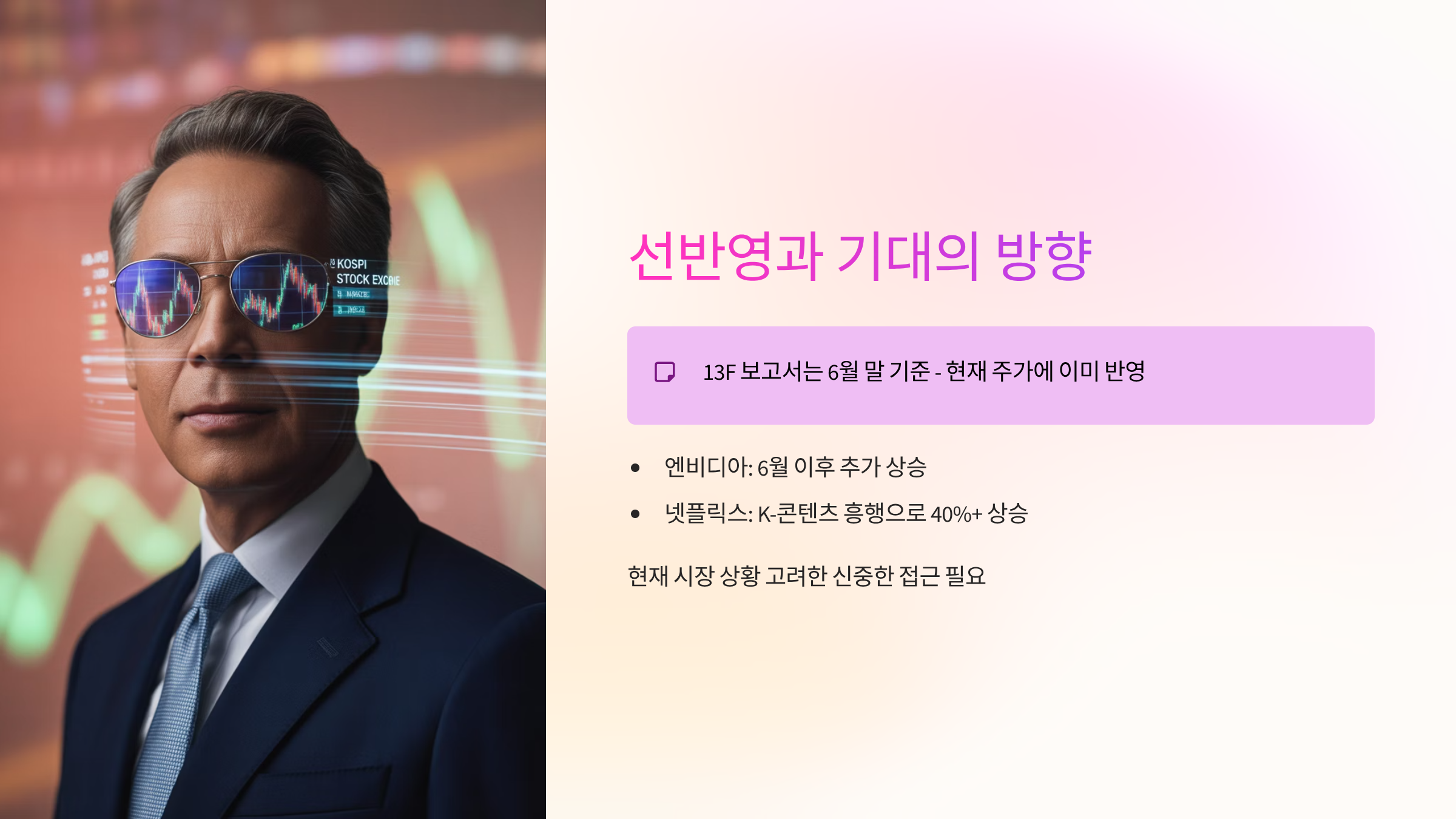 13F 보고서의 내용은 이미 과거 시점(6월 말)의 투자 내역이므로, 이미 현재 주가에는 어느 정도 반영되어 있을 가능성이 높습니다.