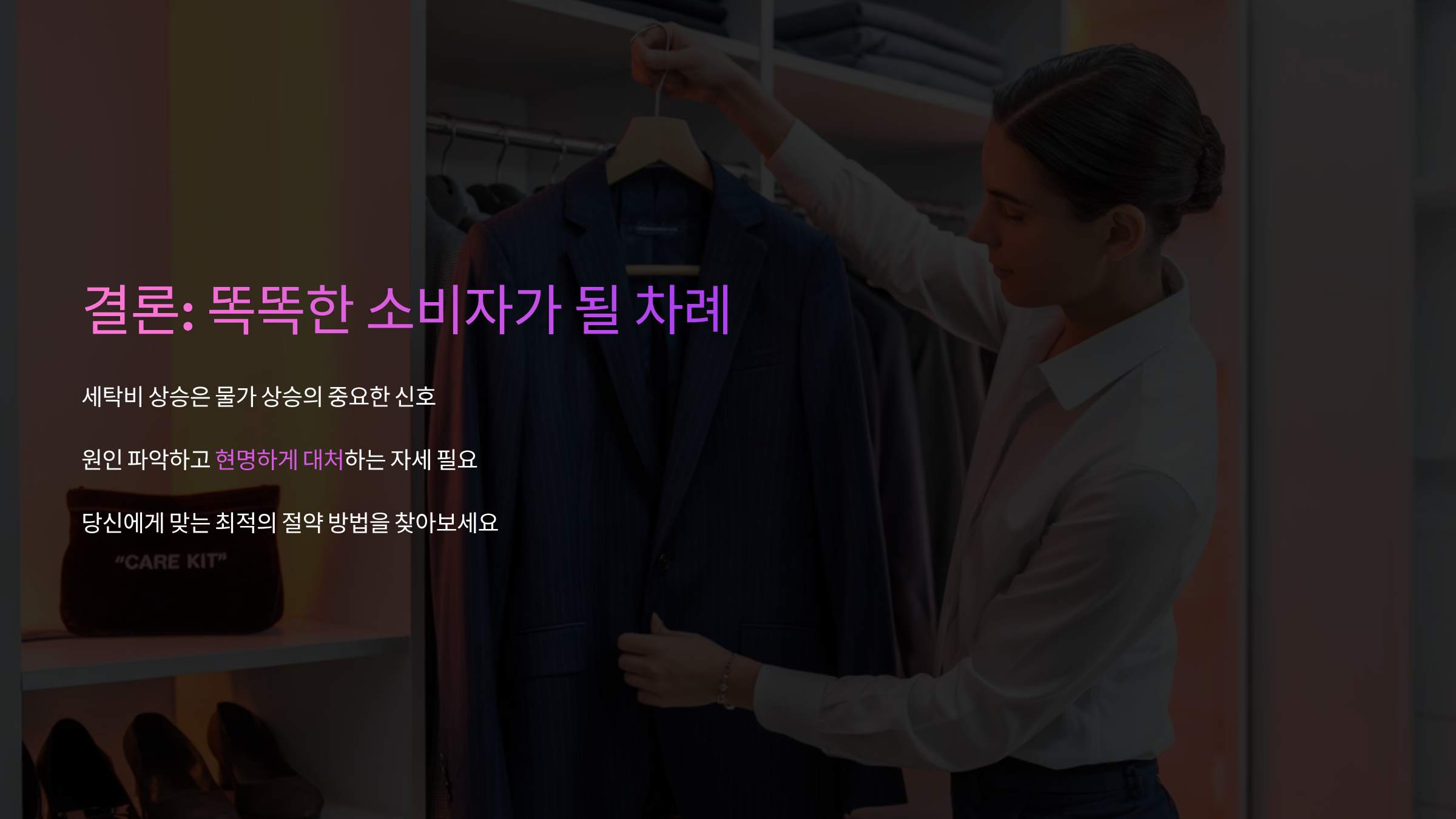 세탁비 상승은 우리 삶의 작은 부분이지만, 거대한 물가 상승의 흐름 속에서 우리가 어떻게 대응해야 하는지 알려주는 중요한 신호입니다. 단순히 오른 가격에 불평하기보다는, 그 원인을 파악하고 현명하게 대처하는 자세가 필요합니다.