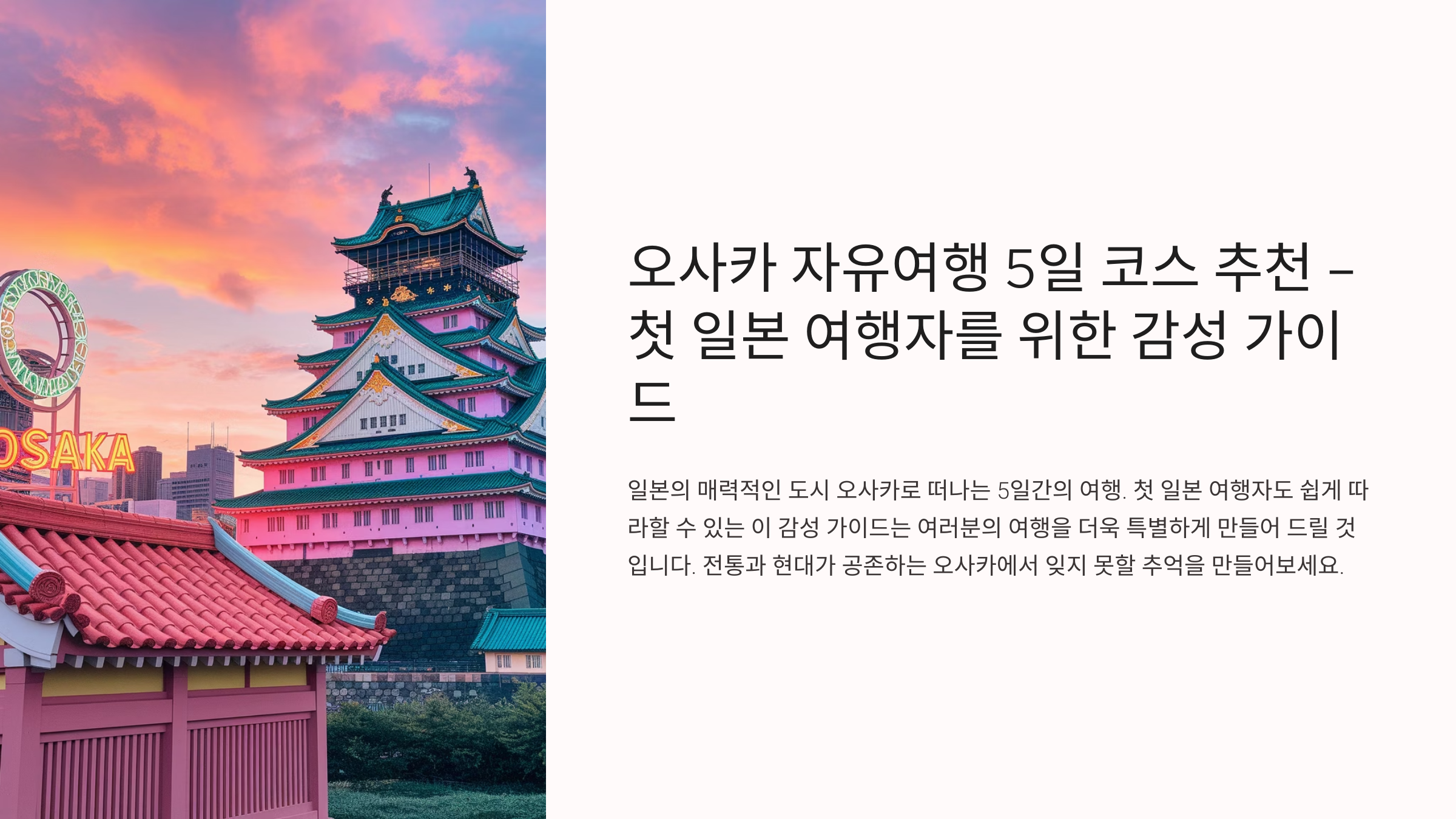 처음 일본 여행을 계획하고 있다면, 이 감성 가득한 오사카 자유여행 5일 코스로 시작해보세요.