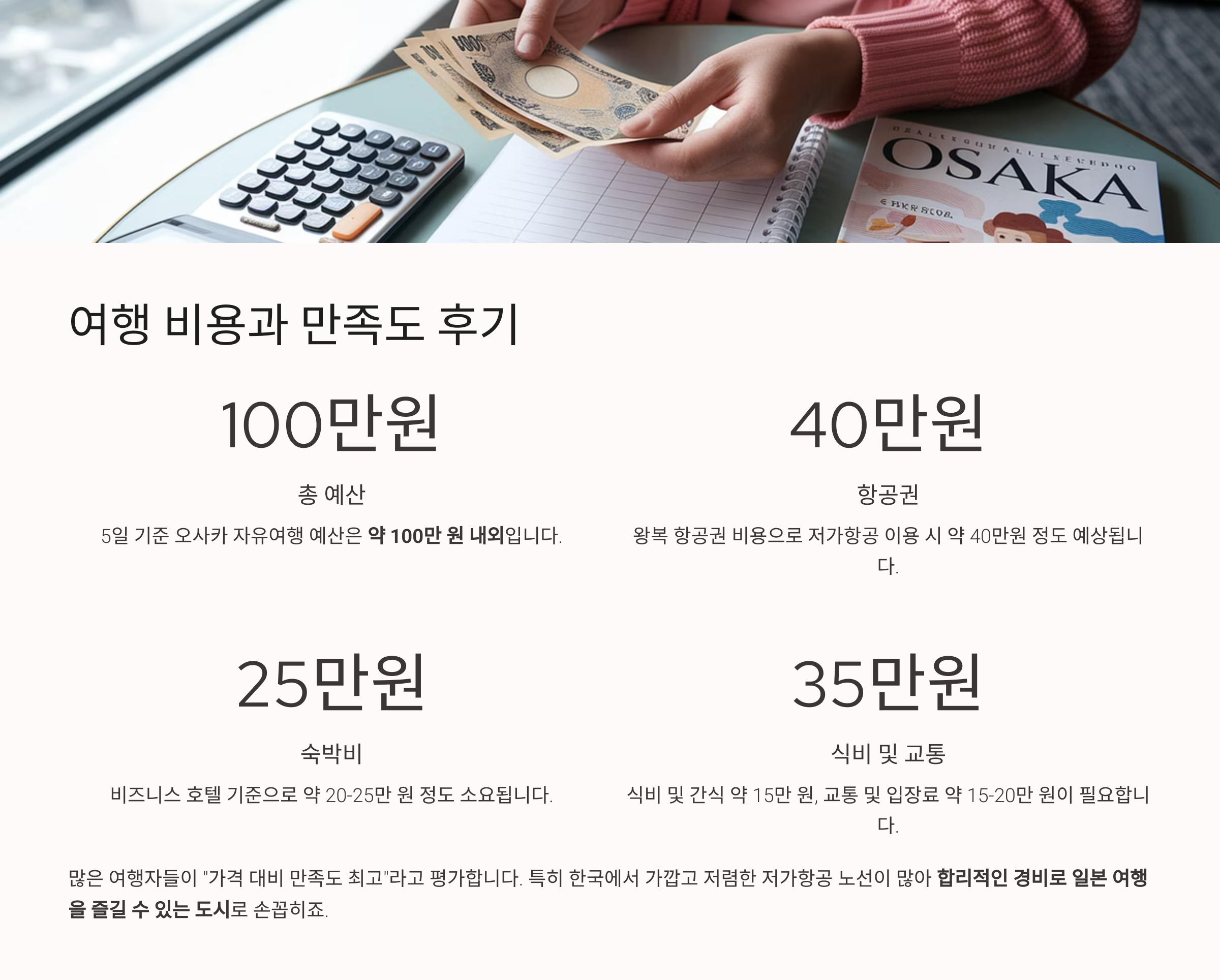 여행을 앞두고 고민되는 비용 문제, 짧은 일정 안에서 효율적인 동선 짜기, 다양한 연령층이 만족할 수 있는 코스 구성 등 실질적인 고민들을 해결할 수 있도록 구성했으니, 오사카 여행을 꿈꾸는 분들께 큰 도움이 되기를 바랍니다.